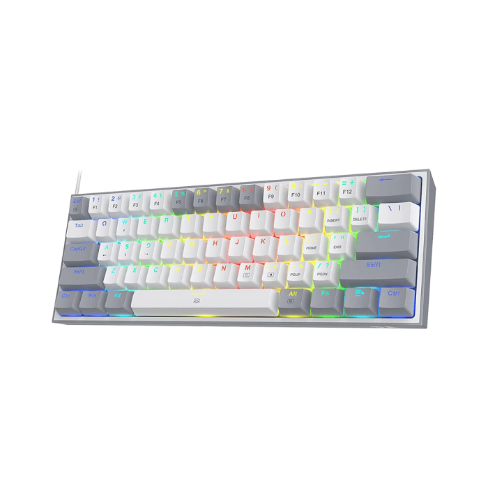 60% Wired & 2 Colors Keycaps: Redragon 60% keyboard in wired mode with fresh 2 colors mixed keycaps layout. Ultra-compact 61 keys with novel keycap color frees up precious desk space with vibrant elements.